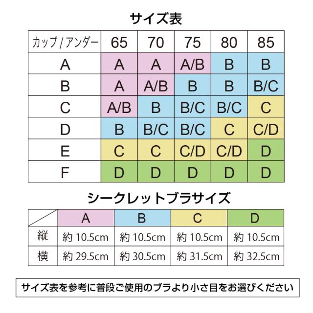 ※サイズ表を参考に普段ご使用のブラより小さ目をお選びください。
