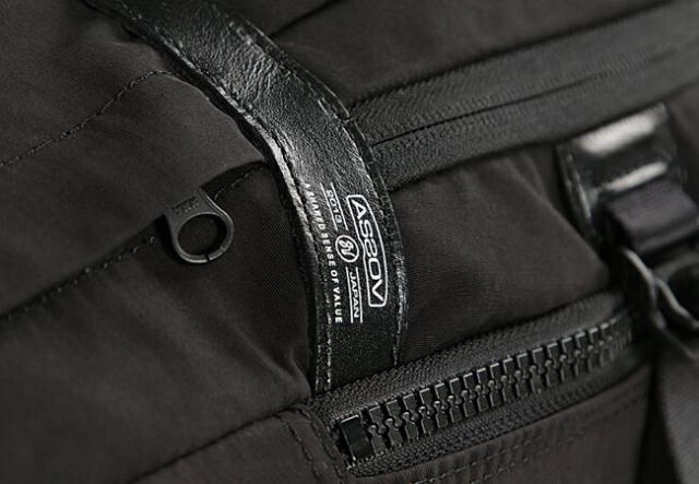 | 本体素材にはタテ糸には程良い光沢感のある 70デニールセミダルナイロン糸・ヨコ糸に表面の毛羽を抑えて製造された 10番コンパクトコットン糸を使用し平織した横畝が特徴的なオリジナル 60/40NC グログラン生地を使用しています。高密度に織られた生地を更に高塩縮加工を施す事により、超高密度できめ細やかでコシがあり、ボリューム感のある独特の風合いの生地となっており、更に使用する事により独特のヴィンテージ感が出てまいります。付属レザーには北米産のステアレザーの優良原皮をベジタブルタンニンで鞣された環境にも人体にも優しいヌメレザーを使用しています。工場独自の染色加脂による加工技術により、ソフトな感じを残しつつも弾力、ハリのあるタッチ感や透明感があります。ハーネス裏面にはショルダーにフィットするストレッチ素材を使用し、本体前面のレザー帯に AS2OV ロゴを刻印箔押しをし、引手もAS2OVオリジナルの引手を使用し、デザイン・機能性共に充実したシリーズとなります。 |