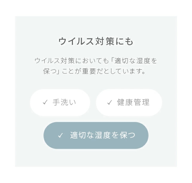 加湿量は【弱・中・強】の3パターンをお選びいただけます。