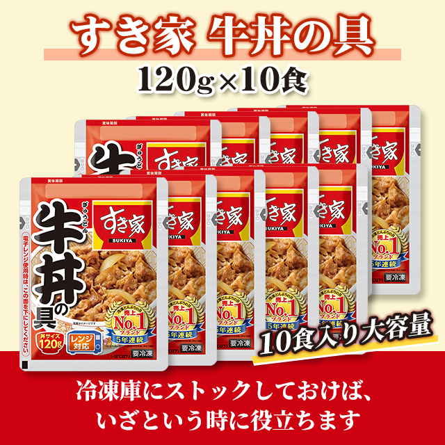 送料込み すき家 牛丼の具 120g×10食 牛丼 冷凍 惣菜 冷凍食品 すきや 10パック おつまみ