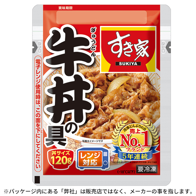 商品名 すき家 牛丼の具 120g×10食 容量 120g×10食 原材料名 【すき家 牛丼の具】牛肉(アメリカ、メキシコ)、たまねぎ、ワイン、しょうゆ、味付け調味料、野菜エキス調味料、果汁(りんご、パイナップル)、香辛料、砂糖、食塩/調味料(アミノ酸等)、(一部に小麦・牛肉・大豆・りんごを含む) アレルギー特定原材料 小麦 賞味期限 商品の発送時点で、90日以上あるものをお届けいたします 保存方法 冷凍(-18℃以下)