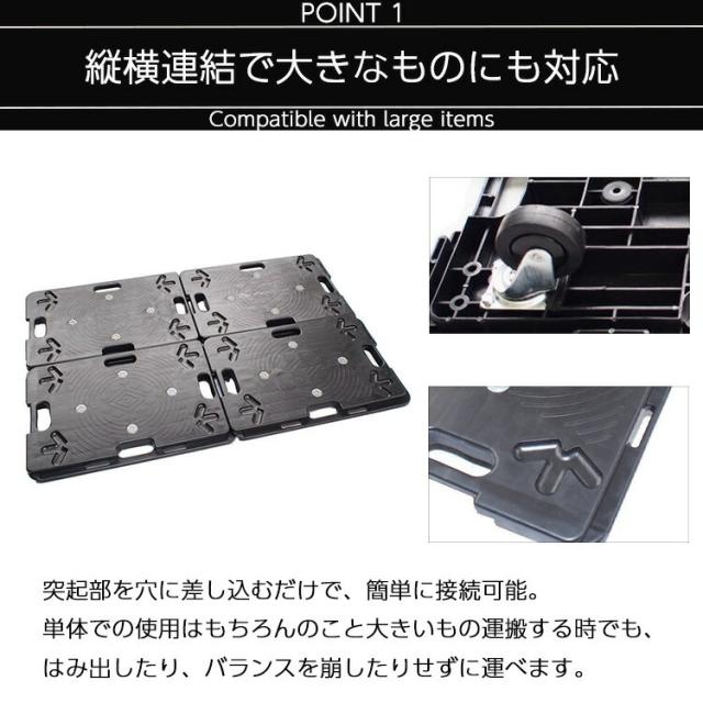 連結台車 60×40cm 耐荷重300kg ホームキャリー キャスター付き 平台車 重量物 運搬台車 樹脂 積み重ね 連結 頑丈 軽量 業務用 手押し マルチ台車 スタッキング 積み重ね 連結 ジョイント カート キャリー マルチキャリー 車輪 運搬 4輪 積載 連結台車