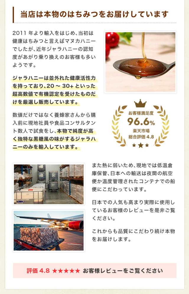 - 先にマリーハニーを試食して、どこか漢方薬でも飲んでるかのような味でしたが、こちらを舐めてみるとジャラの方が薬っぽい。 その分普段使いをしないと思うから良かった。 使い分けで、万能薬としてマリー同様常...