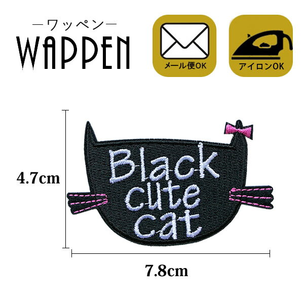 ねこ 刺繍 ワッペン アイロン接着 縦4.7cm×横7.8cm ネコ 猫 cat 動物 アップリケ アイロンワッペン デコ カスタム 手芸 母の日 プレゼント ギフト