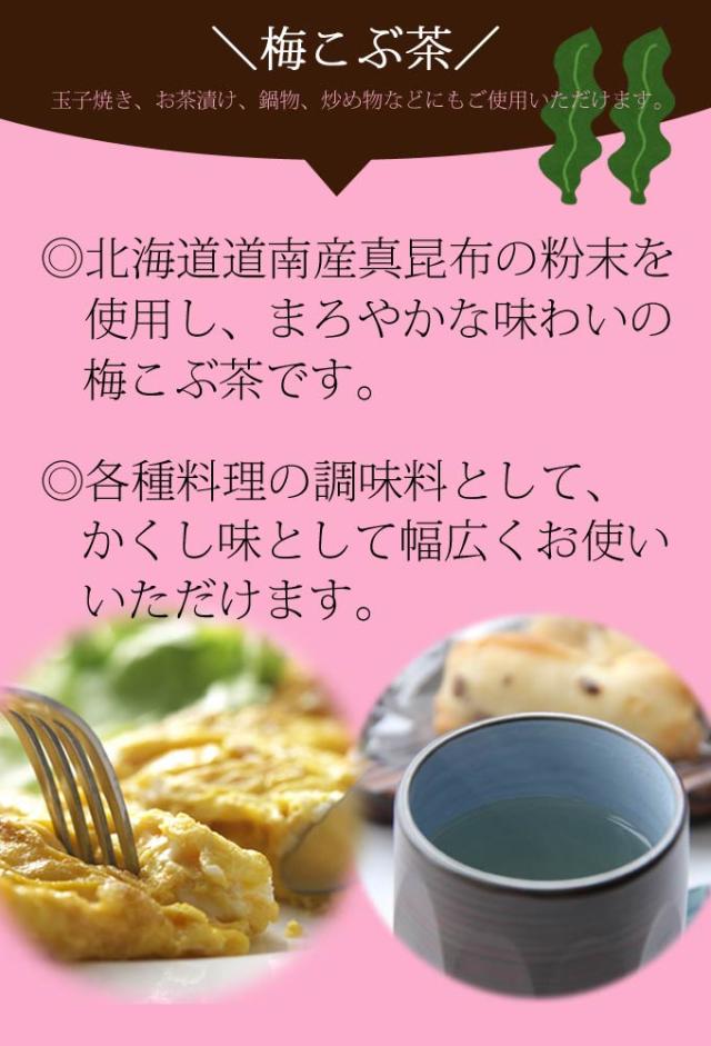- 梱包や届くのも早くて、早速粉末の梅こぶ茶で飲んでみました。 甘みと梅の酸っぱさは優しい感じで、 少量で飲み物や他のお茶とブレンドしたり、 調味料とても安心して使えるので買ってみて良かったです。 しかも...