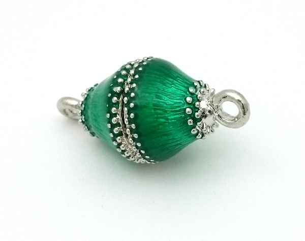 マグネットクラスプ 七宝風ペイント シルバー。つけやすい磁石タイプのネックレス留め具です。引き輪などとは違い、近付ければ勝手に引き合ってとまってくれるので簡単! 今あるアクセサリーの留め具を付け替えたり、オリジナルアクセサリーに活用できます。アンティーク調のシルバーです。