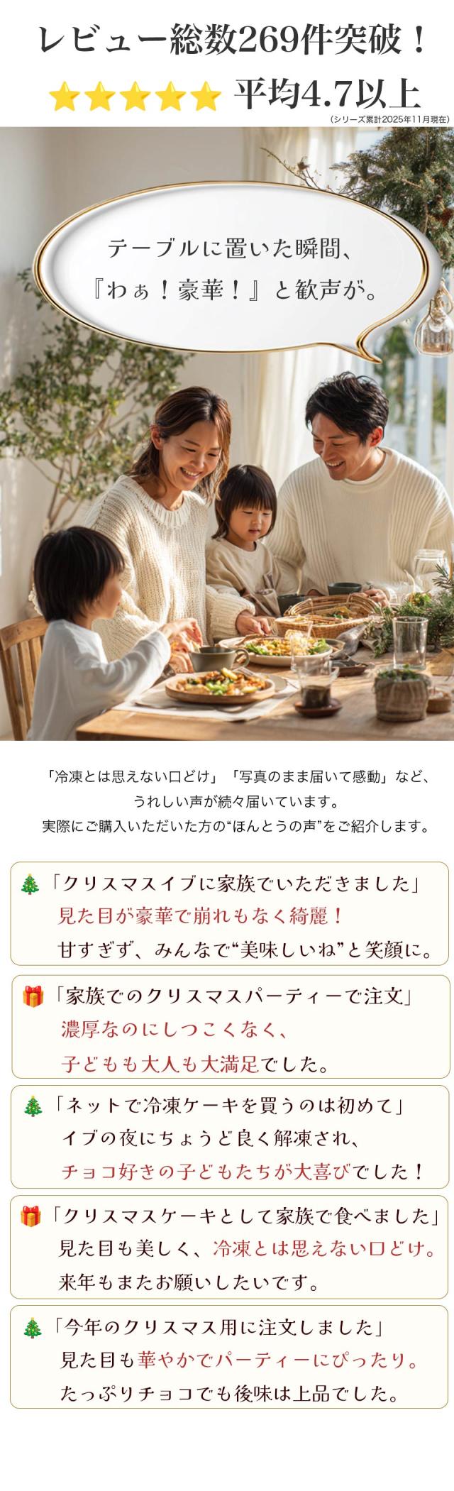 - クリスマスケーキで購入 子供達も喜んでいました。 見た目もオシャレで 味もちょうど良くかんじました。 美味しかったです