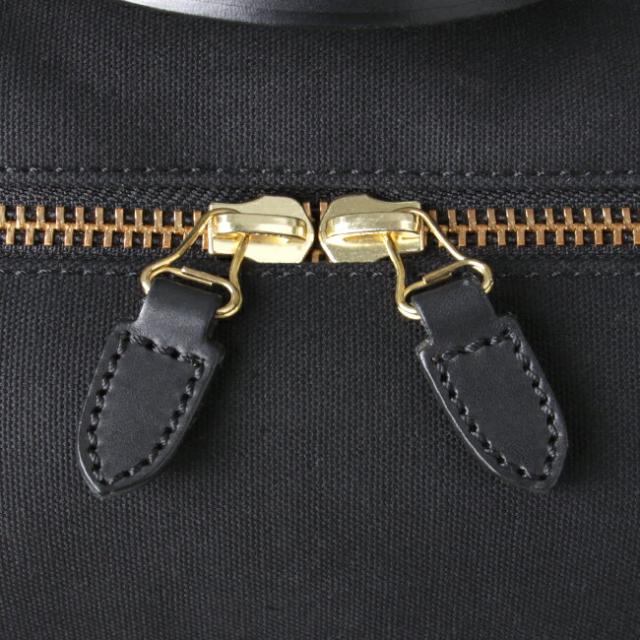 | 本革のブランドタグ付き。 | ダブルファスナー仕様。 |