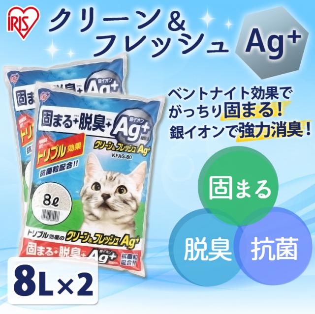 【2袋セット】猫砂 ベントナイト クリーン&フレッシュ Ag+ 8L KFAG-80 固まる 脱臭 抗菌 銀イオン ネコ砂 ねこ砂 トイレ トイレ用品 送料無料