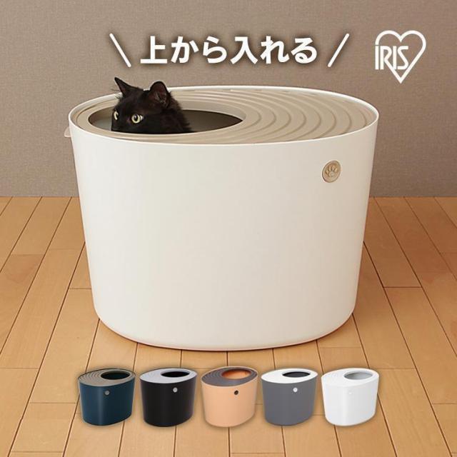 縦型デザインと飛び散り防止凹凸ふたで、猫砂の飛び散りを解決する上から猫トイレです。