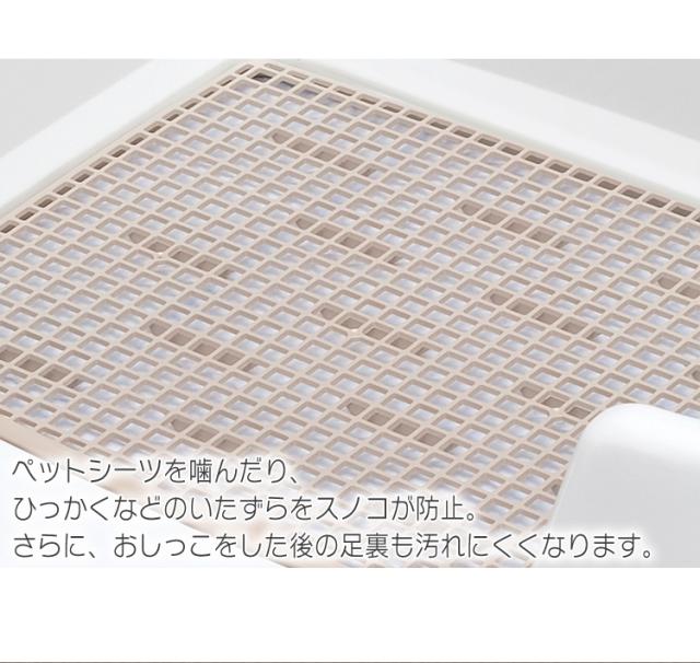 通常の犬用トイレに比べ、壁やフチが高く設計されており、トイレを覚えやすくおしっこの飛び散り防止にも効果的♪