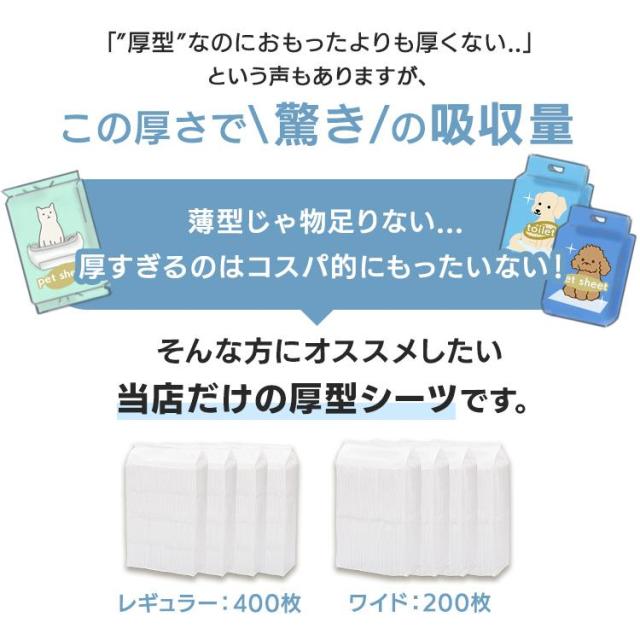吸収量up&長時間消臭 厚型 厚手 ペットシーツ ペットシート ワイド 200枚 レギュラー 400枚 犬 猫 トイレ シート シーツ おしっこシート シーツ大容量 まとめ買い 業務用 ペット用 トイレシート オリジナルシーツ