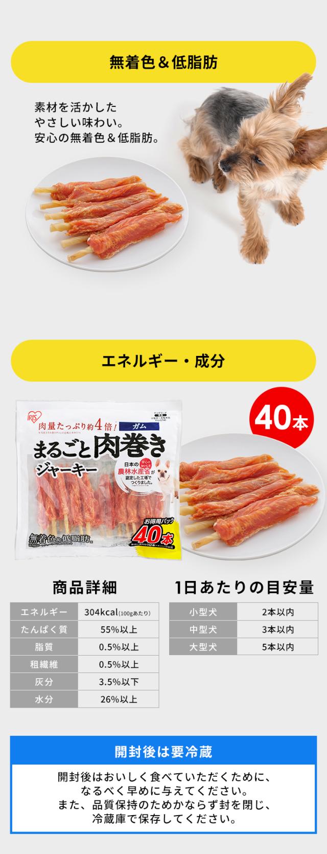 犬 おやつ ジャーキー まるごと肉巻きジャーキー ガム 40本 お得用 アイリスオーヤマ * P-IJ-GT40 肉量たっぷり ボリューム感 無着色 低脂肪 小分けパック 農林水産省 認定工場 安心 犬用おやつ ドッグフード 間食 小型犬 中型犬 大型犬 イヌ いぬ