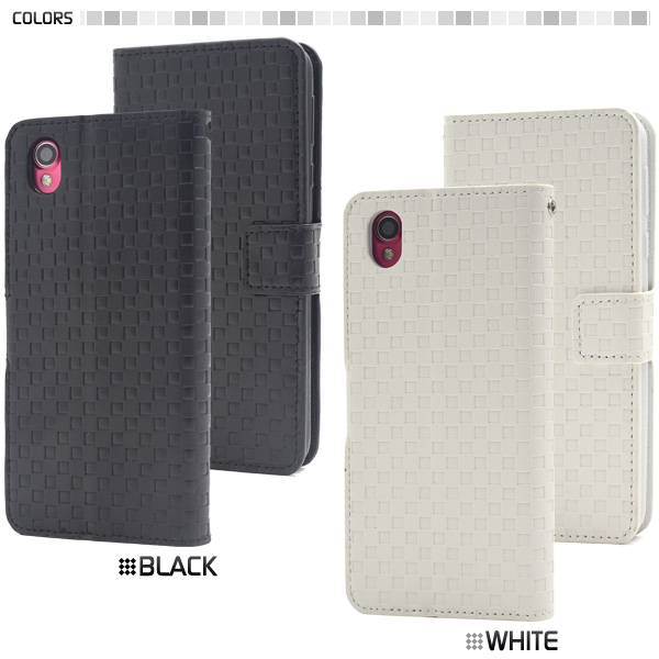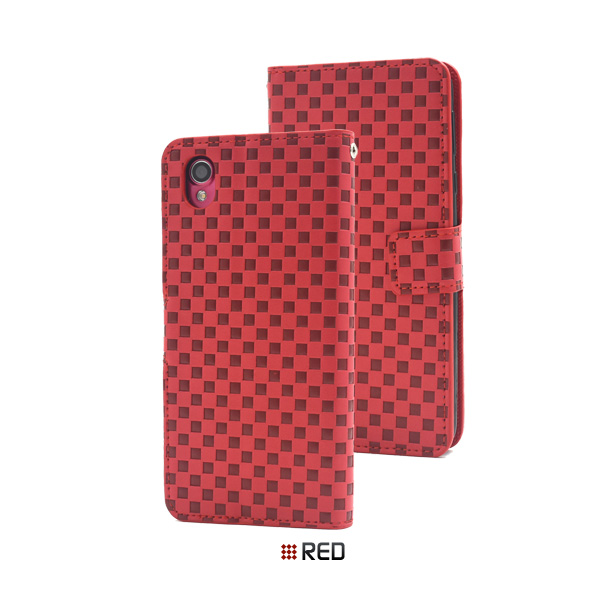 存在感抜群!市松模様レザーデザインの手帳型ケース。衝撃やキズなどからスマホを守ります。また、内部はソフトケースなので着脱が簡単です。落下防止に便利なストラップとストラップホール付きです。また、内側に2つのカードポケットとサイドポケットが付いています。※スマートフォンは付属しません。※ライセンス商品ではありません ※カードは付属しません。