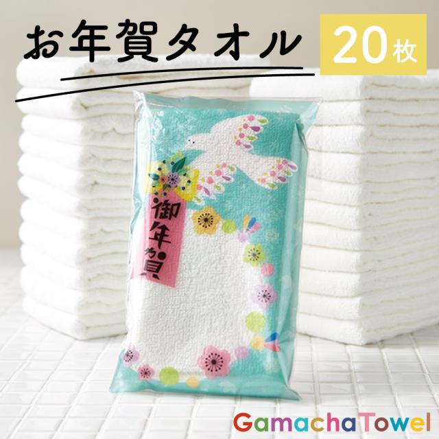 AMYオリジナルパッケージ お年賀タオル【20枚】(白フェイスタオル/個包装)お正月 年末年始のご挨拶に◎ 綿100% 薄手タオル