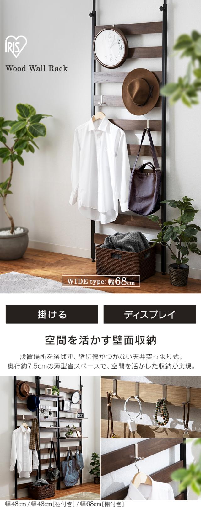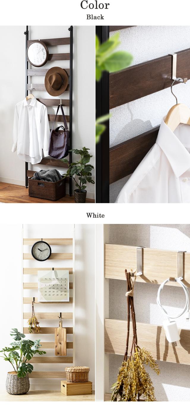 壁面収納 つっぱり 壁掛け収納 突っ張りラック ラダーラック ウッドウォールラック WLR-66 ブラック 突っ張り ラック フック収納 壁面家具 壁面収納 キッチン収納 キッチン家具 リビング家具 リビング収納 コレクションラック アイリスオーヤマ