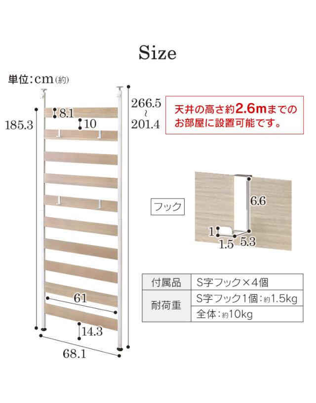 幅約68.1×奥行約7.5×高さ約201.4〜266.5