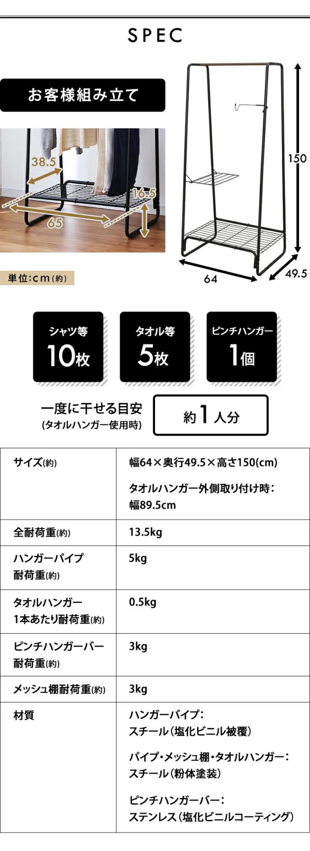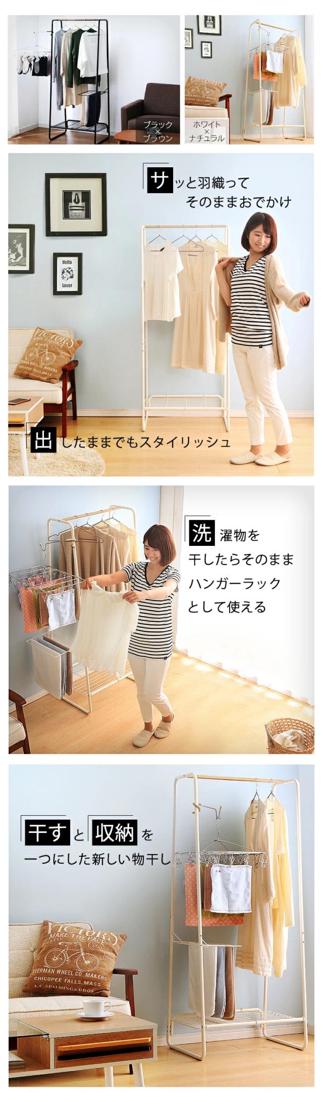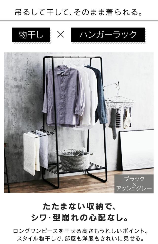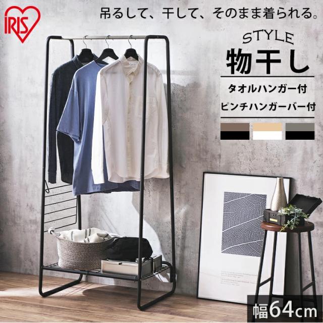 洗濯物干し 室内物干し 物干し ハンガーラック おしゃれ 幅64cm 木目調 ロング丈 コート掛け タオルハンガー 棚 室内 部屋干し 梅雨 除湿機 サーキュレーター 花粉 一人暮らし 防犯 スタイル物干し 白 黒 アイリスオーヤマ HKM-640 *