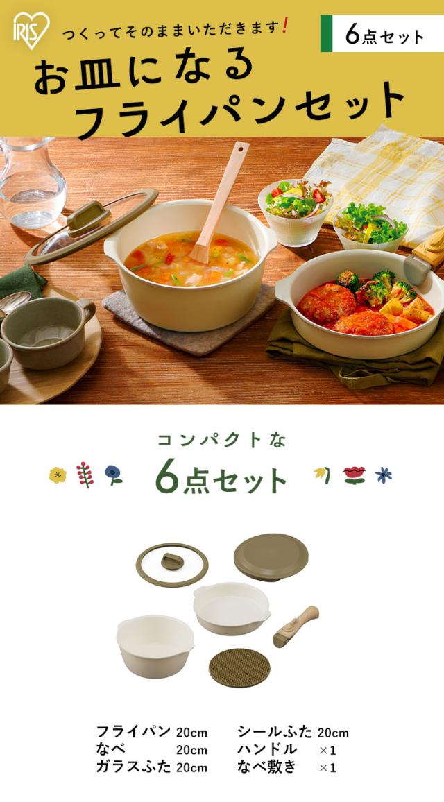 フライパン フライパンセット アイリスオーヤマ IH対応 ガス火 お皿になるフライパン 6点セット DPAN-6S アイボリー 6点セット かわいい フライパン 鍋 IH ガス オーブン セラミックコーティング 焦げ付かない プレゼント ギフト 人気 送料無料