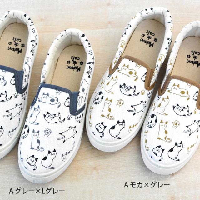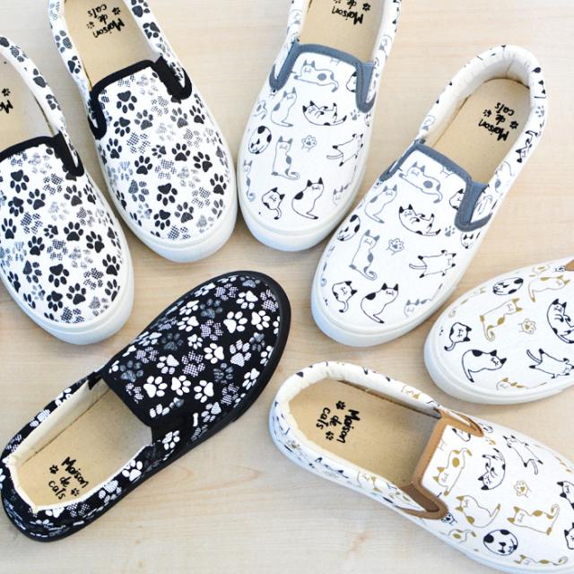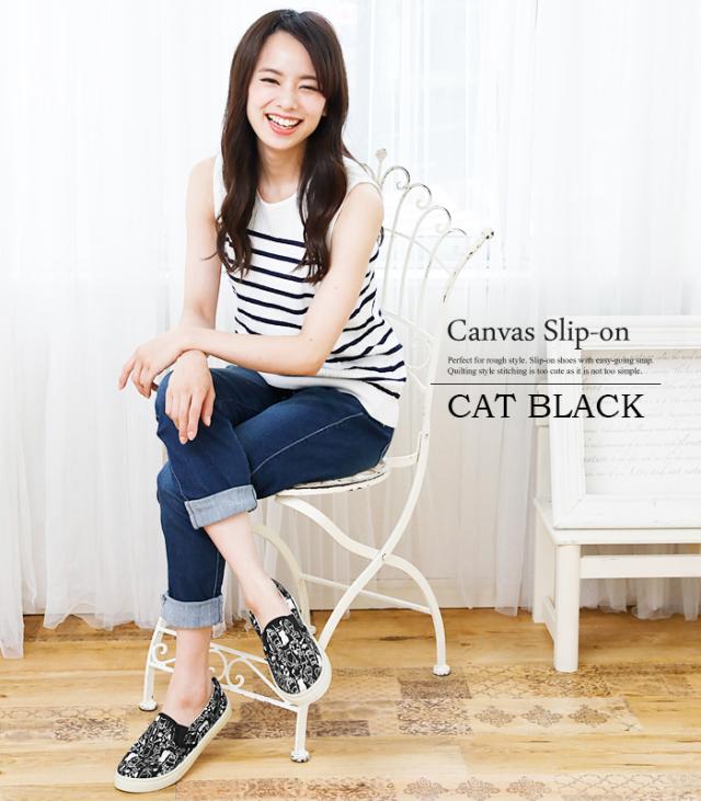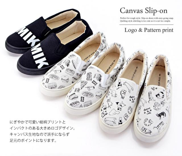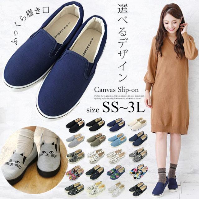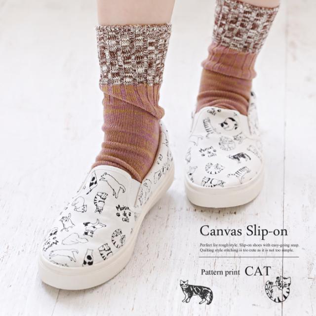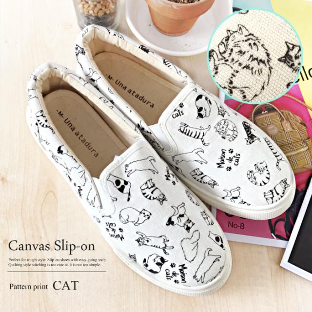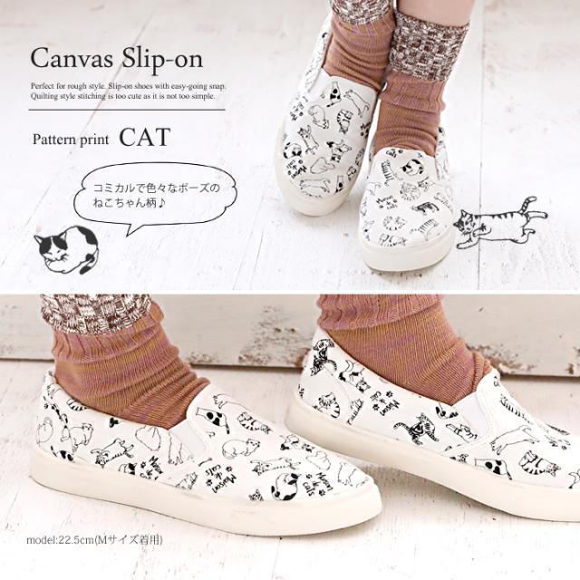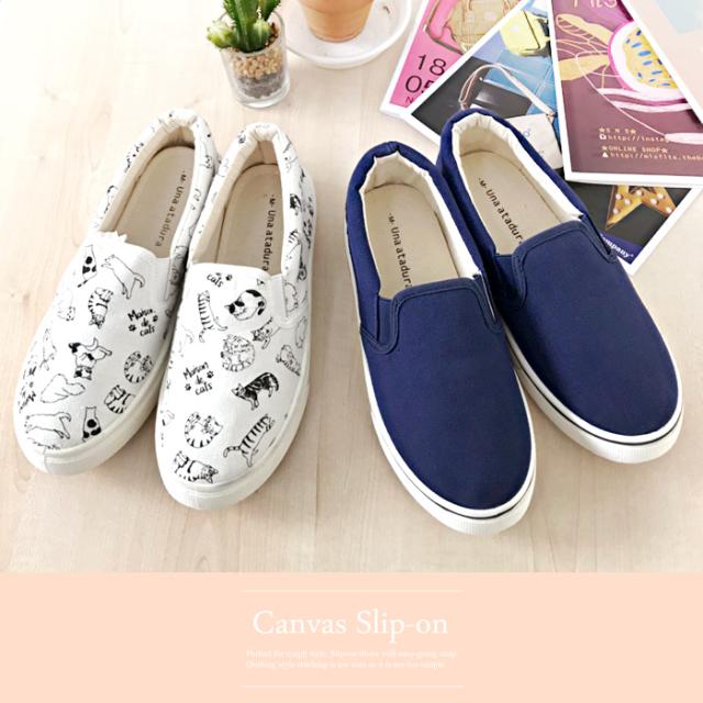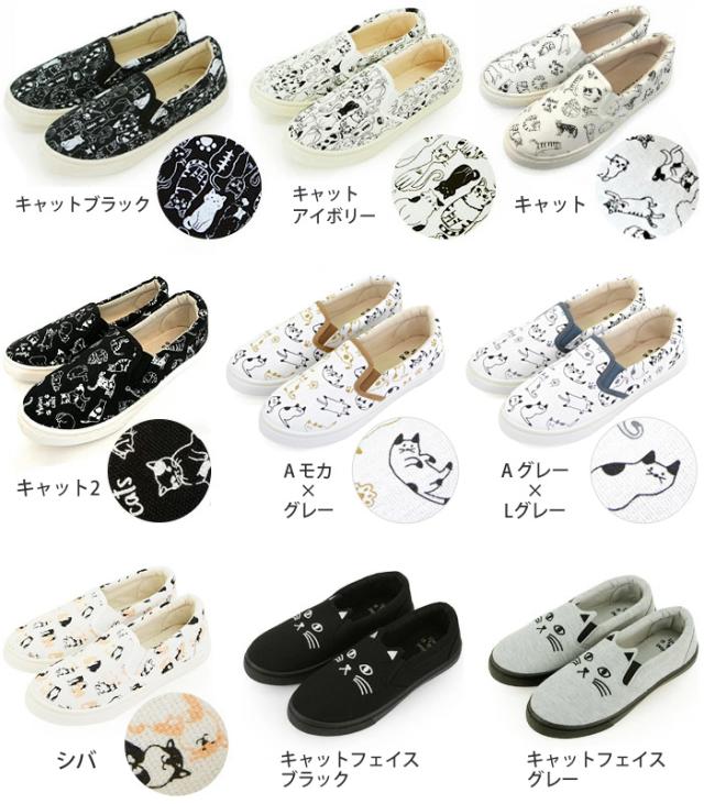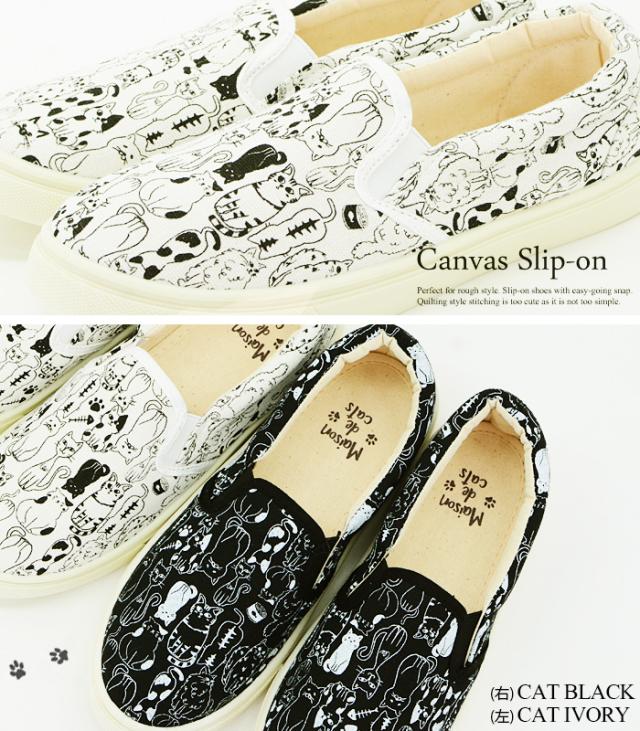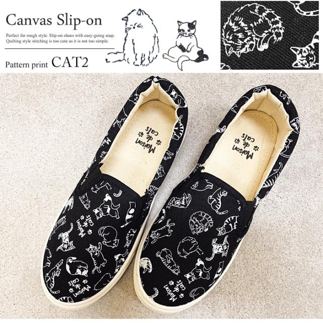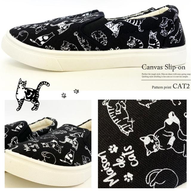 スリッポン レディース メンズ 靴 シューズ 無地 柄 猫 キャンバス スリッポン (ym-SPN) [宅配B]【送料無料】 春物 春夏 女性 フラットシューズ ぺたんこ 靴 レディース スニーカー 激安 靴スニーカー 猫グッズ ねこ ネコ 黒 白 カジュアル agesugi_sfa