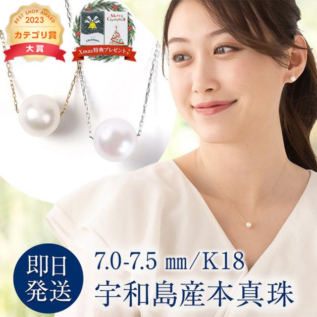 ネックレス パールネックレス 真珠 7mm - 7.5mm 本真珠 パールスルーネックレス K18 18金 あこや真珠 パール一粒 一粒ネックレス あこや本真珠 宇和島 レディース ギフト フォーマル 結婚式 冠婚葬祭 記念日 お祝い 誕生日 クリスマス プレゼント 女性 アクセサリー 特典