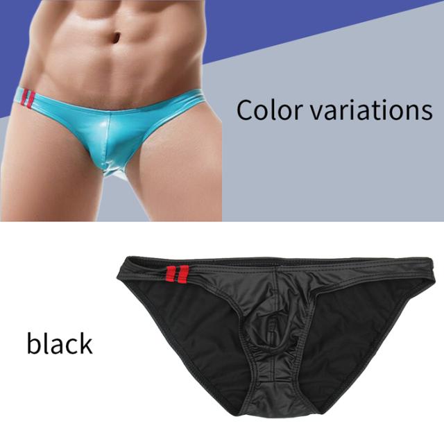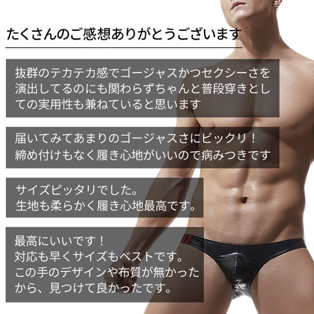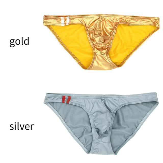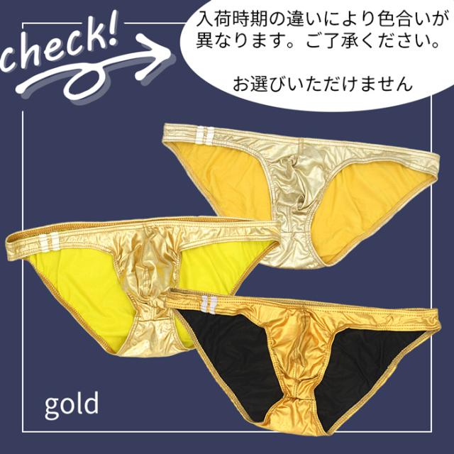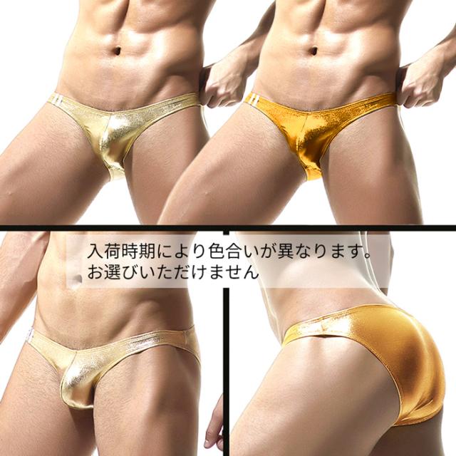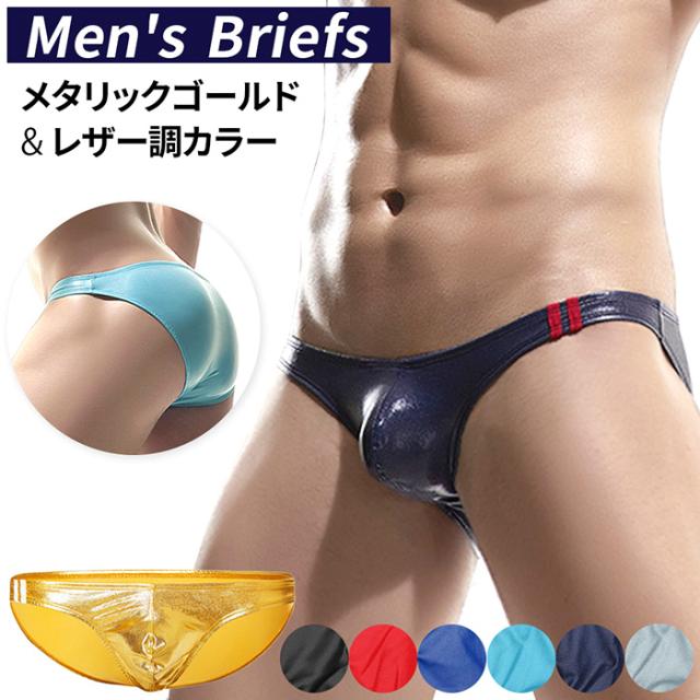 ビキニ ブリーフ メンズ ローライズ レザー調 マット メタリックゴールド 光沢 フルバック ワンポイント かっこいい 派手 セクシー 黒 赤 青 水色 紺 金 e034