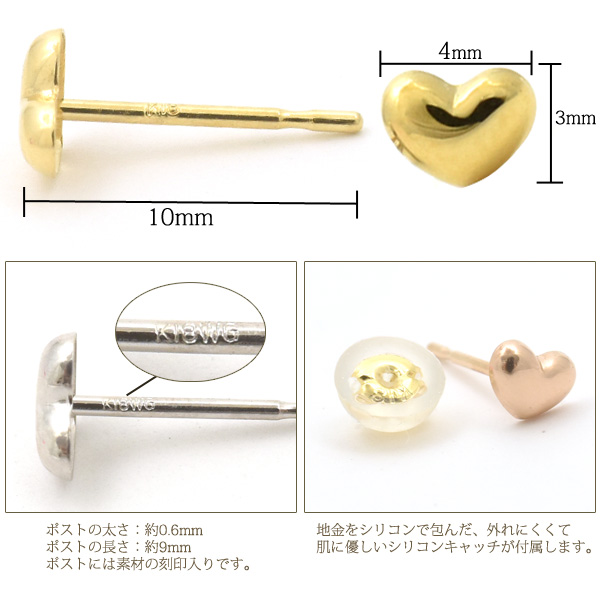 安心の日本製!K18(18金)使用! 小さなぷっくりハートのピアス