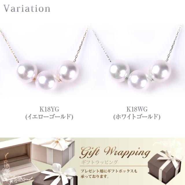 ネックレス パールネックレス 真珠 7mm - 7.5mm 3粒 本真珠 パールスルーネックレス K18 18金 ゴールド あこや真珠 あこや本真珠 宇和島 レディース ギフト フォーマル 結婚式 お呼ばれ 記念日 お祝い 冠婚葬祭 誕生日 クリスマス プレゼント 女性 アクセサリー