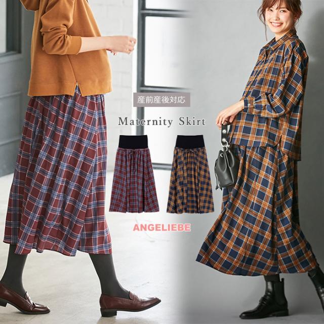 マタニティ 服 スカート 産前産後対応 チェックギャザーフレアースカート 産前 産後 妊婦服 仕事 セットアップ