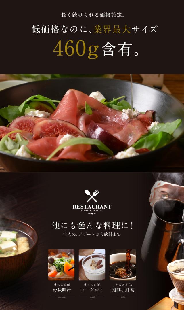 サラダや冷奴等にかけて、スープやコーヒーに混ぜてお召し上がりください。
