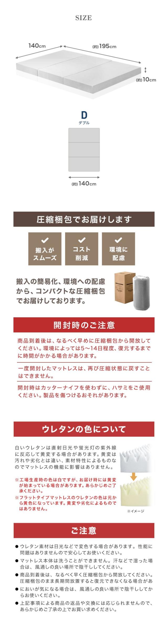 | サイズ | (約)195cm×140cm×10cm(ダブルサイズ) ※折りたたみ時:(約)65cm×140cm×30cm |