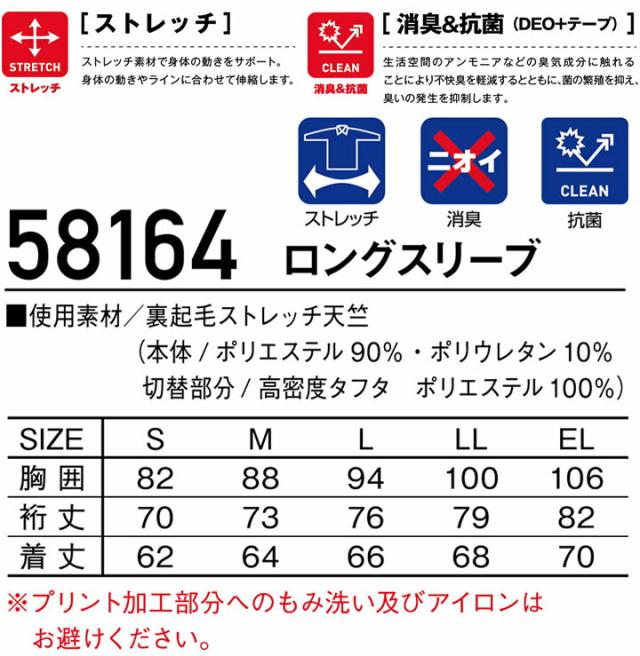 防寒 インナー ジャウィン 冬用長袖インナーシャツ 58164 JAWIN アンダーウェア コンプレッション 裏起毛 保温性 消臭・抗菌 自重堂【即日発送】