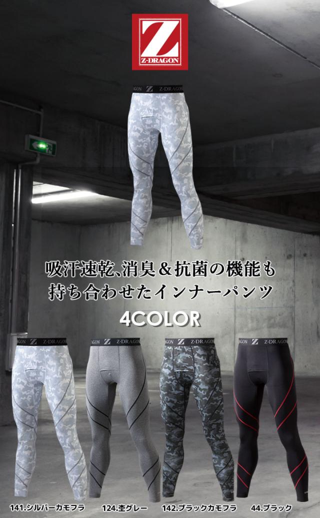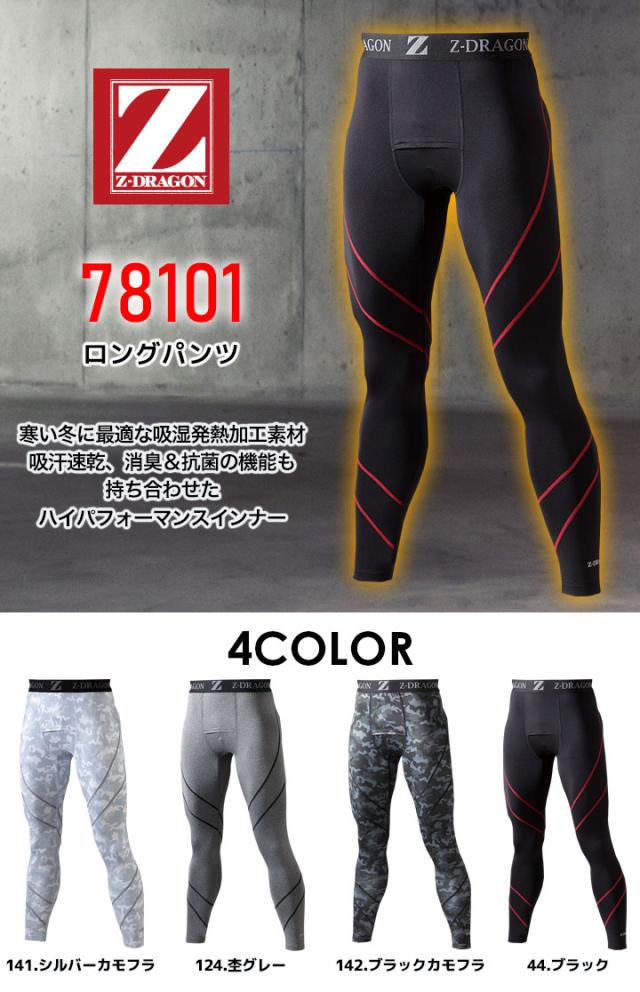 インナーパンツ Z-DRAGON 78101 ストレッチ ロングパンツ コンプレッション 吸湿発熱 吸汗消臭 抗菌 自重堂 作業服 作業着【送料無料】【即日発送】