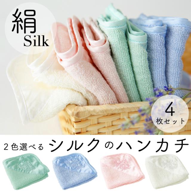 シルクのハンカチ【2色選べる 4枚セット】天然素材で敏感肌の方や赤ちゃんにもおすすめ◎[ゆうパケット 配達日時指定不可]