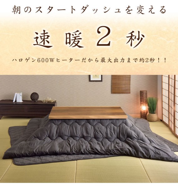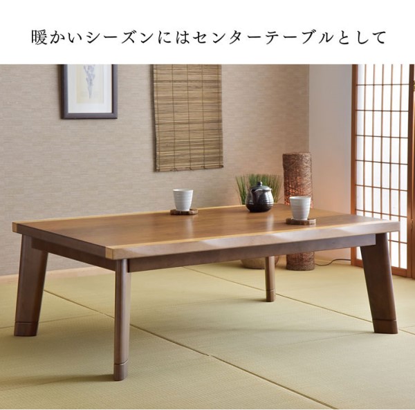 こたつ テーブル 速暖2秒 600Wハロゲンヒーター 幅120 手元コントローラー 継ぎ脚 長方形 なぐり加工 こたつテーブル センターテーブル ローテーブル コタツ 炬燵 皮付き ウォールナット リビング シンプル 和風 木製 座卓 暖卓 おしゃれ