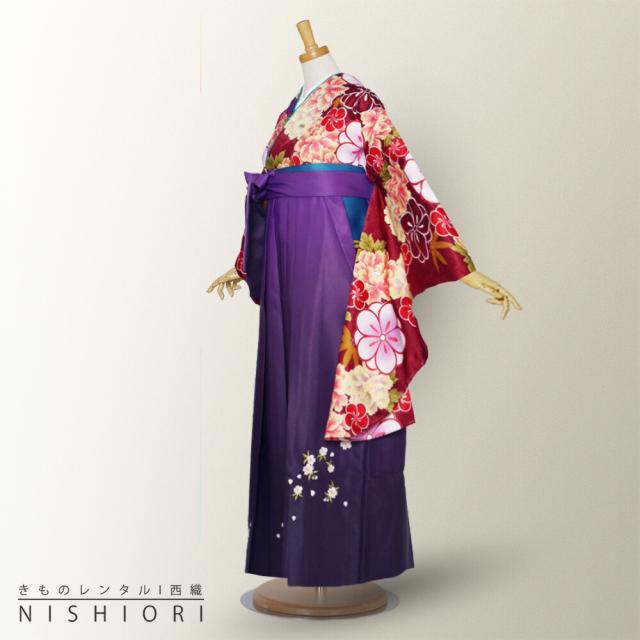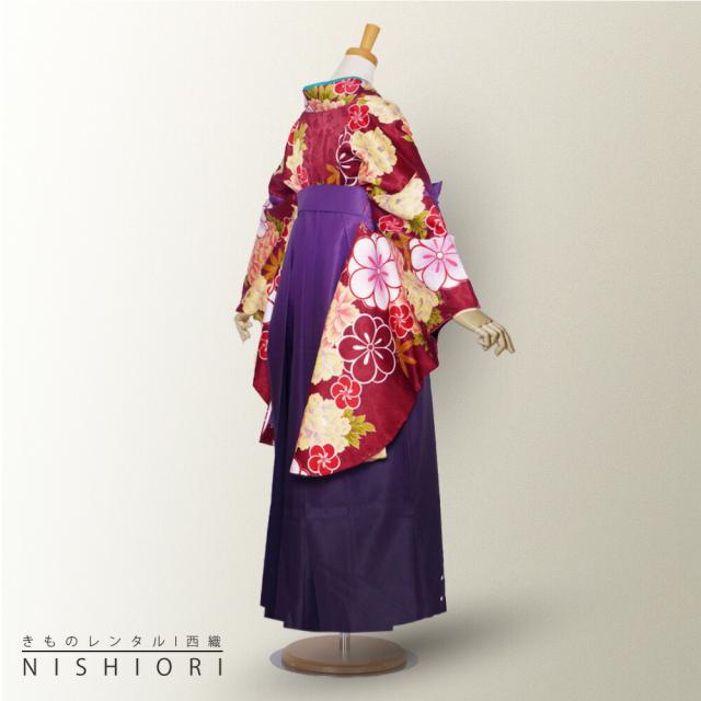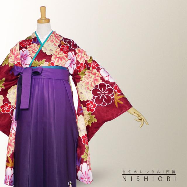 二尺袖 着物 袴 レンタル 貸衣装 Sサイズ Mサイズ Lサイズ 小学生 対応可 赤 牡丹 紫 ブーツ選択可
