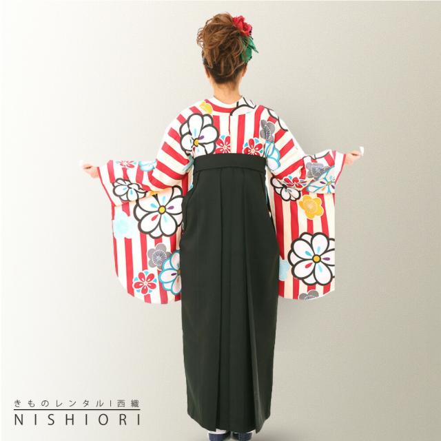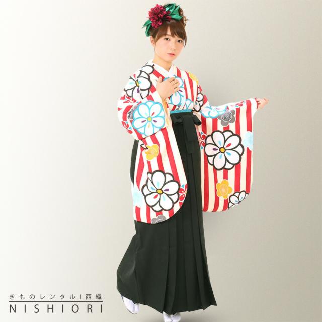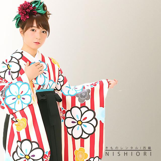 二尺袖 着物 袴 レンタル 貸衣装 Mサイズ 小学生 対応可 白赤 縞模様 梅 ブーツ選択可
