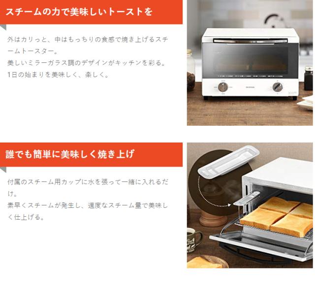 トースター スチームオーブントースター 4枚焼き ミラーガラス スチーム オーブン タイマー付き 一人暮らし 4枚 本体 アイリスオーヤマ SOT-012-W 1200W 送料無料