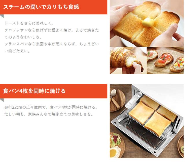 - デザインはシンプルですっきりしています。 食パン四枚焼くことができ、お掃除が簡単なオーブントースターを探してしたので希望通りでした。 スーチーム機能はおまけ程度かなと思います。
