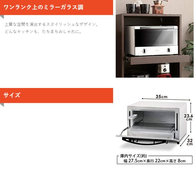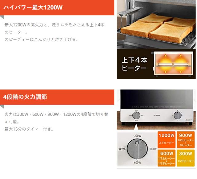 - ものすごい火力で、ガスグリルで焼くときのように短時間でこんがり焼色がつきました。 ただ、我が家は冷凍のパンをトーストするのがほとんどで、食パン6枚切りとかならちょうどよかったのですが、厚めのものだとも...