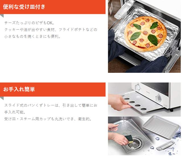 - パンはカリカリで美味しく 商品自体は悪くわないがトレー(横の部分7〜8センチ塗装むら)スチームの水皿(曲がっていておくとぐらぐら、内側3〜4センチ傷でその上に塗装、外枠にも傷)パンくずなどの1番下のト...