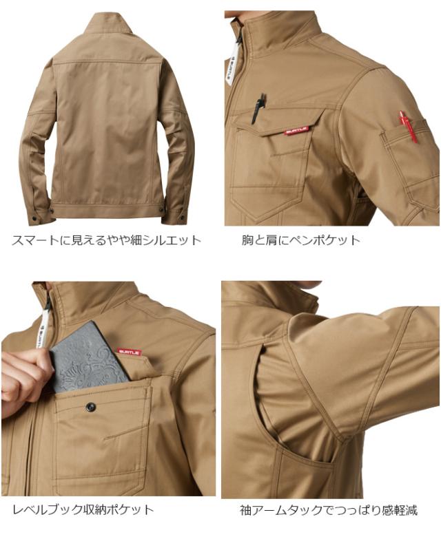 | 大人気のBURTLE(バートル)からスタイリッシュなシルエットのジャケットが登場!! 素材はシワになりにくい定番の日本製T/Cソフトツイルを使用。優れた耐久性で長く快適に着用できます♪デザインはやや細身で、野暮ったくなりがちなワークジャケットをクールにカッコ良く仕上げました。 収納ポケットのサイズも色々で使い勝手が良く、機能性も十分!春・秋・冬と3シーズン十分に使えるアイテムです。 ※Sサイズはユニセックス対応シルエットを採用しています。 | ||||||