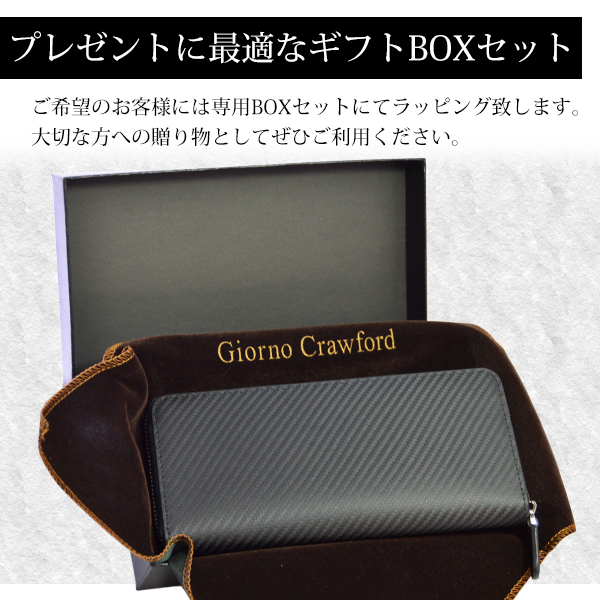 財布 メンズ イタリアンレザー 人気のスマートポケット付き ラウンドファスナー カーボン レザー 牛革 薄型 Giorno Crawford 父の日 母の日 プレゼント ギフト