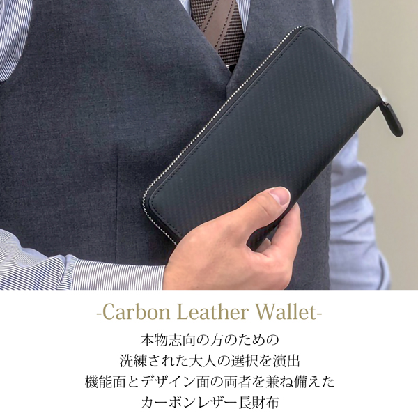 機能面とデザイン面の両者を兼ね備えたカーボンレザー長財布。