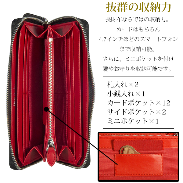 上質で高級感溢れる長財布でビジネスやプライベートなどシーンを選ばず使えます。