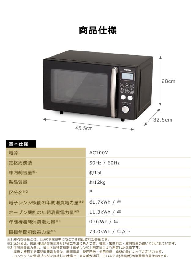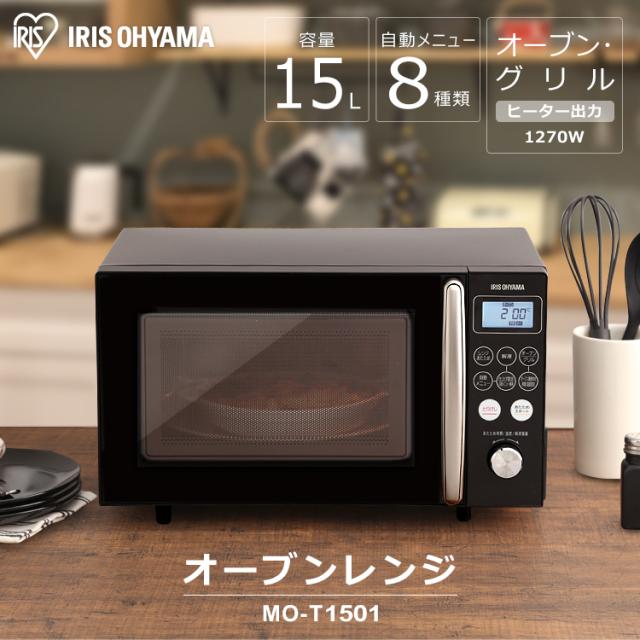 レンジ アイリスオーヤマ オーブンレンジ 15L MO-T1501-W MO-T1501-B ブラック ホワイト レンジ オーブン 東日本 西日本 あたため 新生活 一人暮らし シンプル キッチン 送料無料 安心延長保証対象