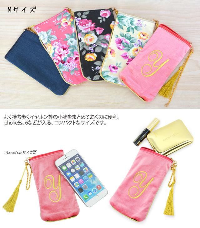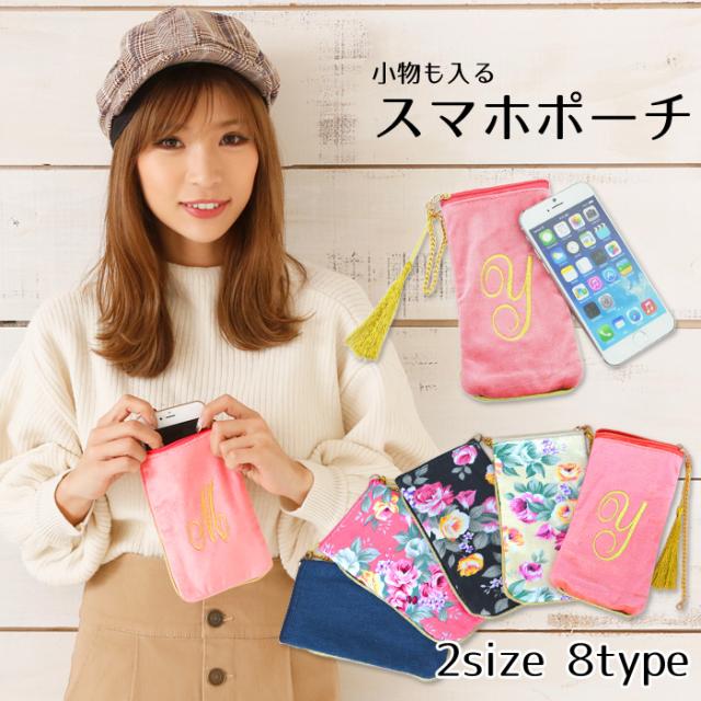 アウトレット スマホ ポーチ ファスナー レディース 花柄 イニシャル アルファベット スマホポーチ (ar-SMP)【メール便送料無料】 iphone Android ケース 小物 収納 化粧ポーチ コスメポーチ たばこケース シンプル おしゃれ かわいい 小物入れ 整理 プチプラ ポイント消化