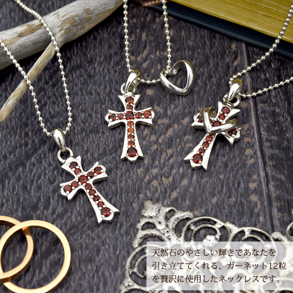 ネックレス シルバー925 3way ガーネット12粒 クロスネックレス 十字架 1月誕生石 ネックレストップ Silver925 誕生日 クリスマス