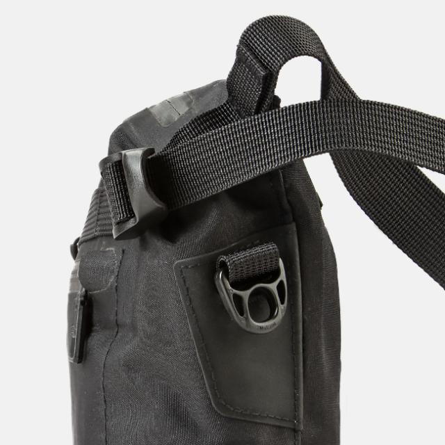 | ショルダーストラップは感覚的に長さ調節ができる設計。 | コーデュラナイロンの証としてタグが付けられています。 |