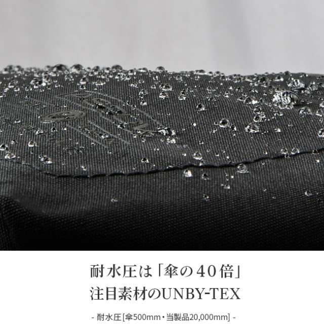 すべての天候でストレスなく使用することができる防水ファニーパック。防水性を謳う鞄はたくさんありますが、こちらのファニーパックは一般的な"防水バッグ"のさらに上をいく防水性を装備。その秘密は、「UNBY-TEX」という注目のブランドオリジナル生地にあります..